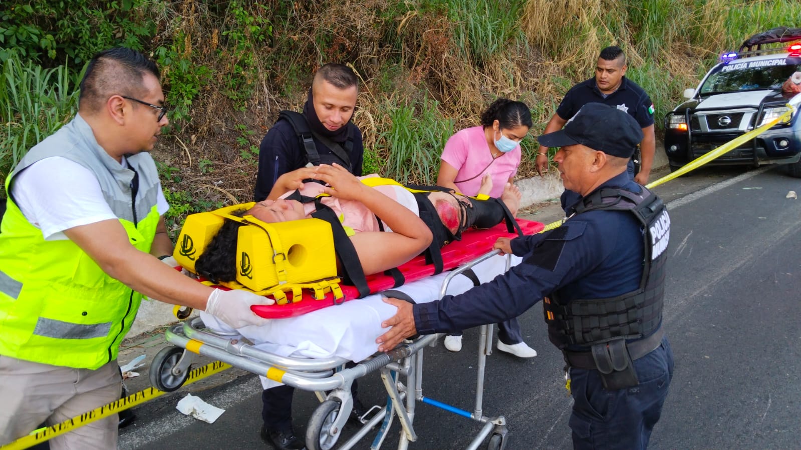 Al lugar arribaron paramédicos de Soporte Vital, mismos que les brindaron los primeros auxilios y posteriormente los canalizaron al hospital Bernardo Peña para su atención médica.