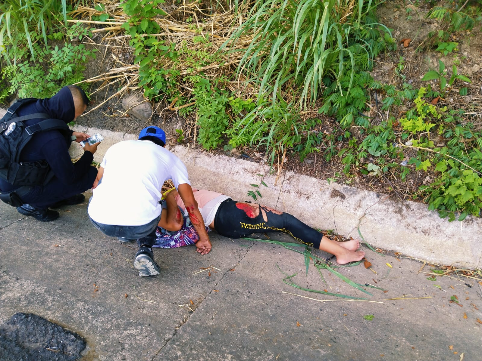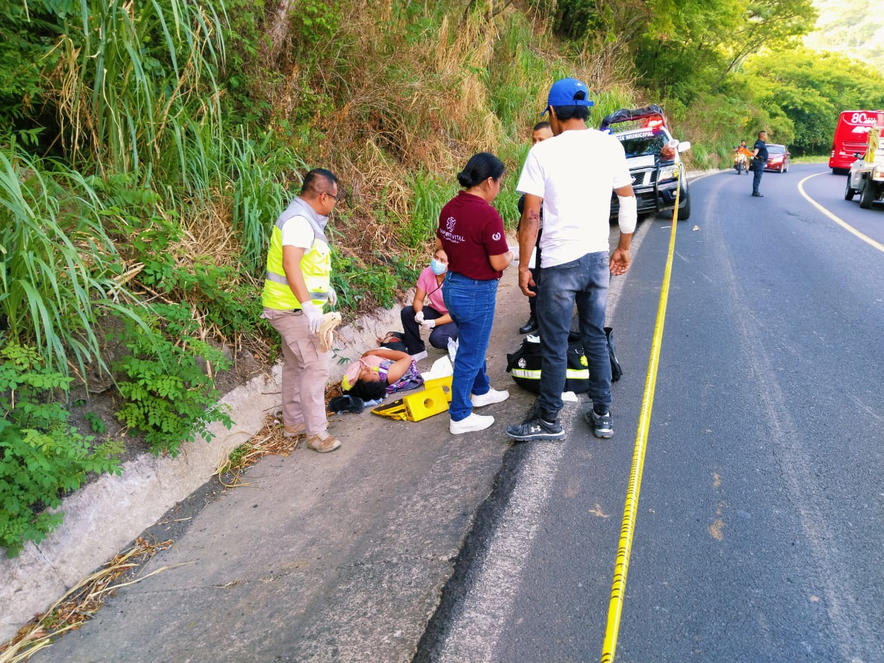 La fémina se identificó como, Gabriela Salazar de 22 años de edad y algunos conductores que pasaban por el lugar les brindaron ayuda para evitar que fueran atropellados por otra unidad.