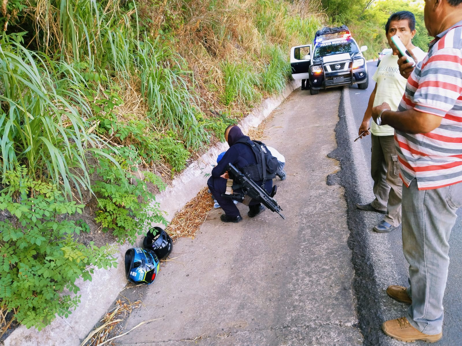 El suceso se registró cerca de la desviación a Texcaltitan, cuando el conductor de la motocicleta indicó que se dirigían a la localidad de Matacapan y a esa altura perdió el control de la motocicleta tras una presunta falla mecánica, por lo que derraparon y sufrieron golpes contusos además de raspones.