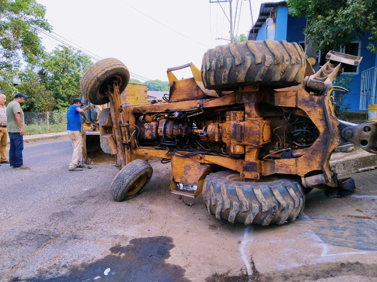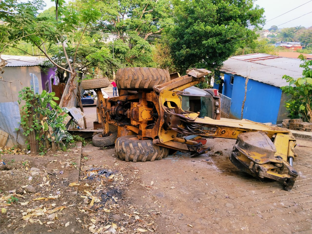 San Andrés Tuxtla, Veracruz. – El día de ayer miércoles 3 de mayo, en la calle Hermanos Velasco casi esquina con Boulevard del Ferrocarril de la colonia La Estación, se registró la volcadura de una maquinaria de construcción conocidas como Retroexcavadoras.