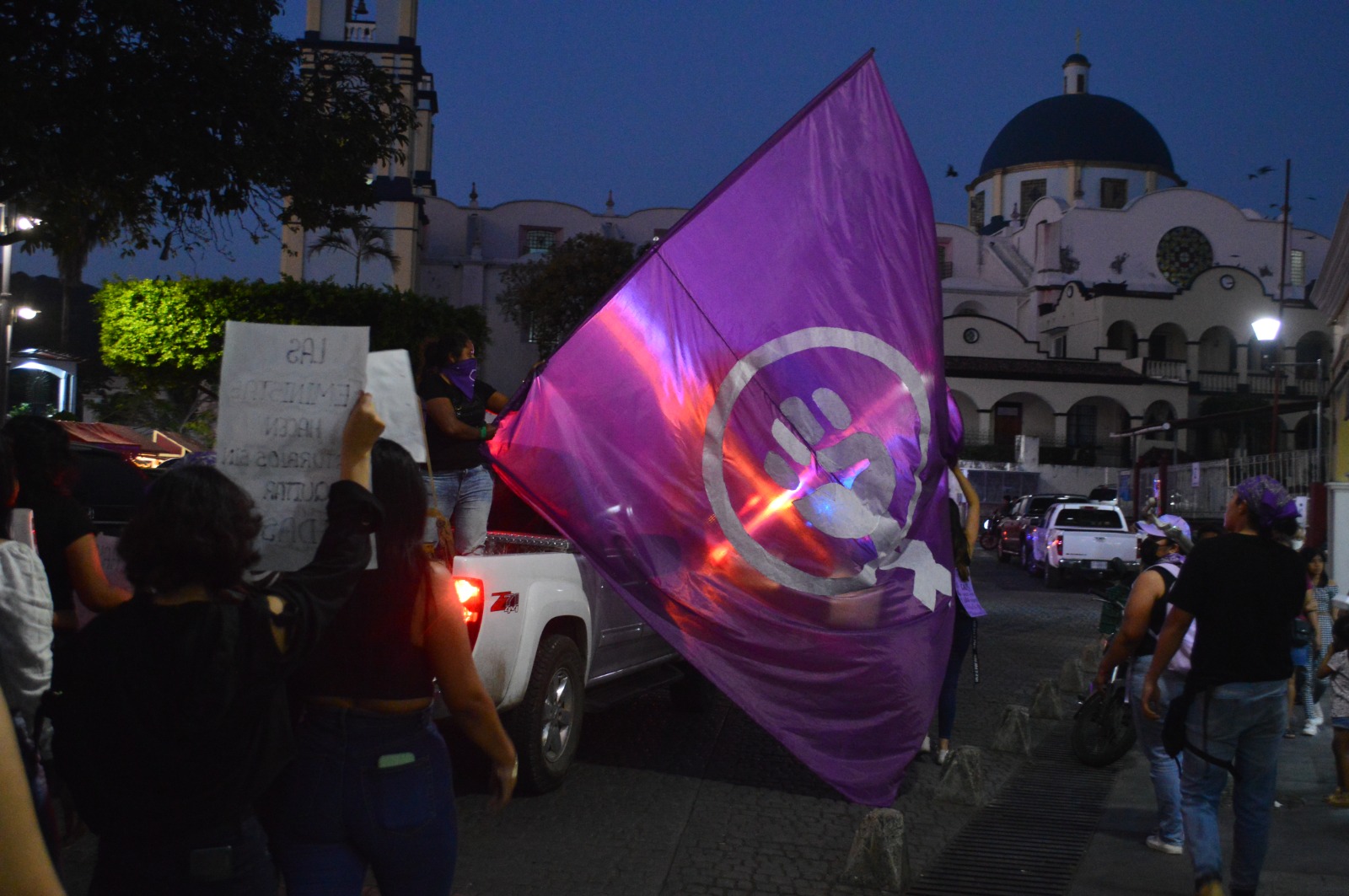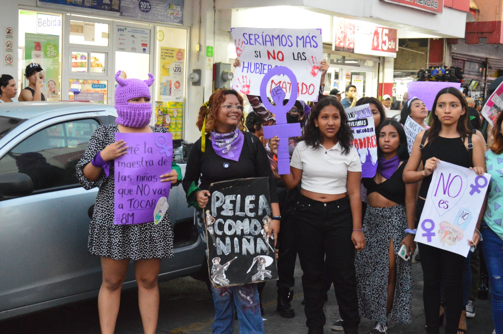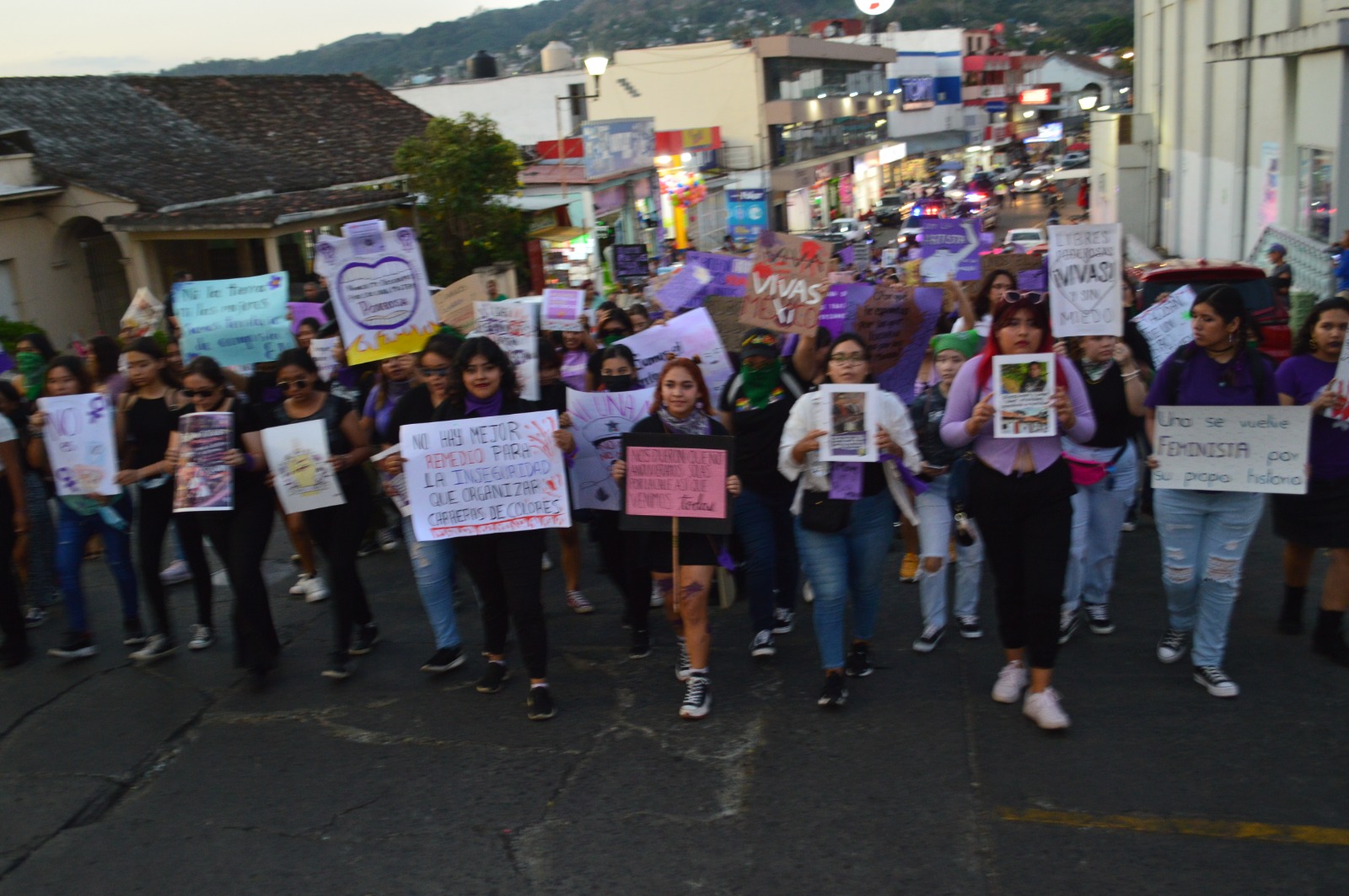 Con consignas, marchan feministas en San Andrés Tuxtla por día internacional de la mujer