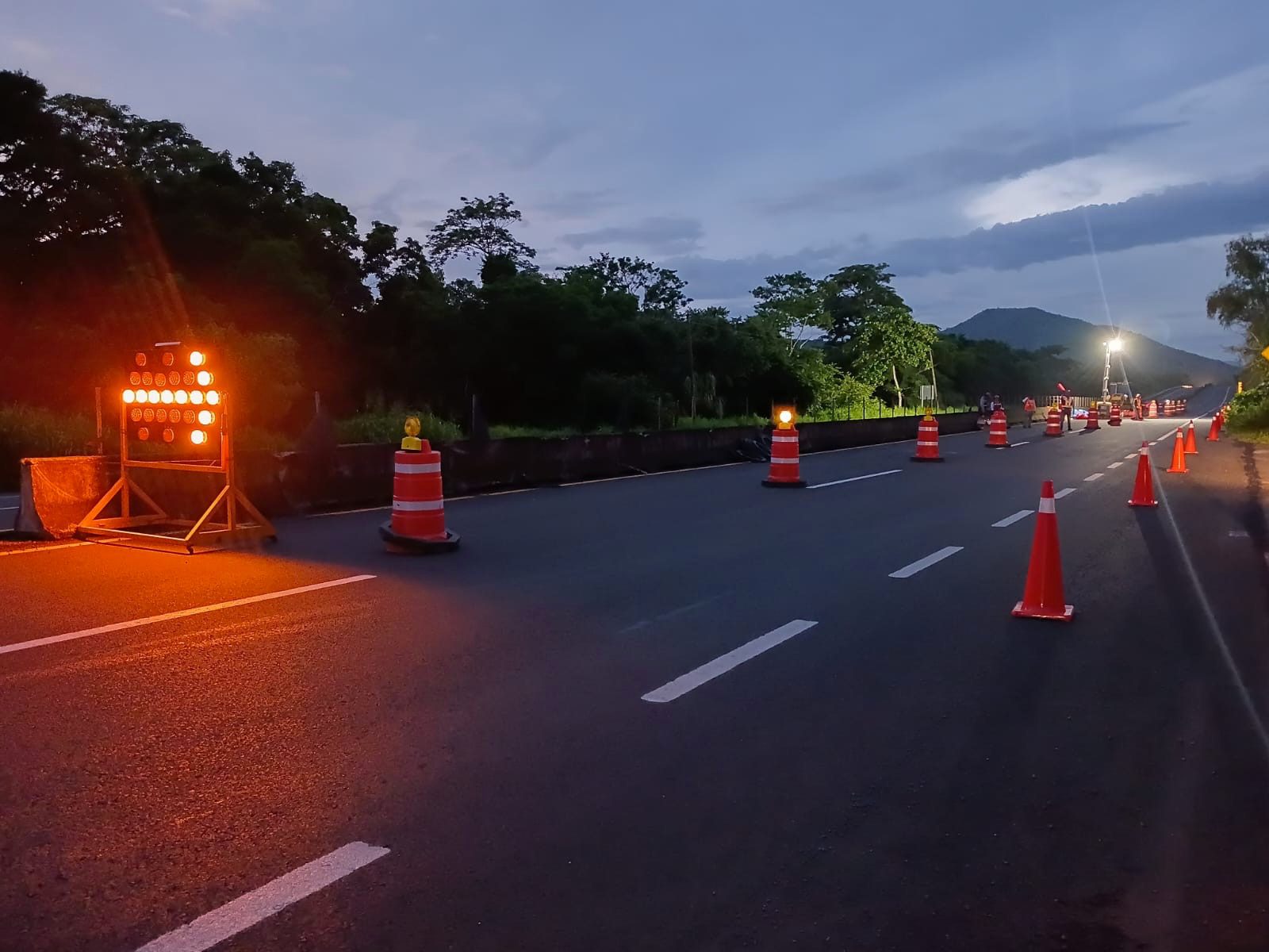 Hay señales preventivas y dispositivos de seguridad para proteger a quienes transitan por este tramo. Se cuenta con señalamiento luminoso nocturno.