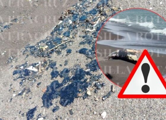 Aparece delfín muerto en playa de Alvarado con manchas de hidrocarburo