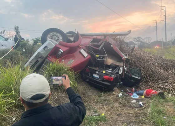 Dos hombres murieron aplastados por un tráiler cargado de caña en la carretera Córdoba-Veracruz, a la altura de El Faisán.…