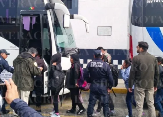Trasladan a 229 migrantes hallados dentros de tráiler en Xalapa a estación migratoria de Acayucan