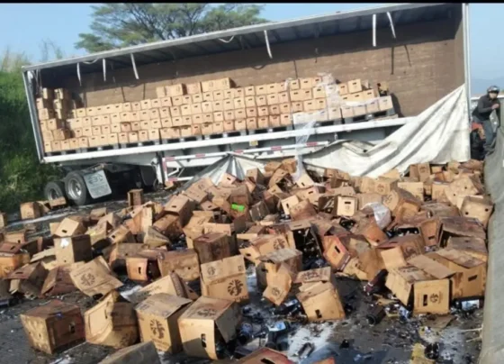 Vuelca tráiler con cerveza en carretera de Veracruz y saquean carga en la autopista