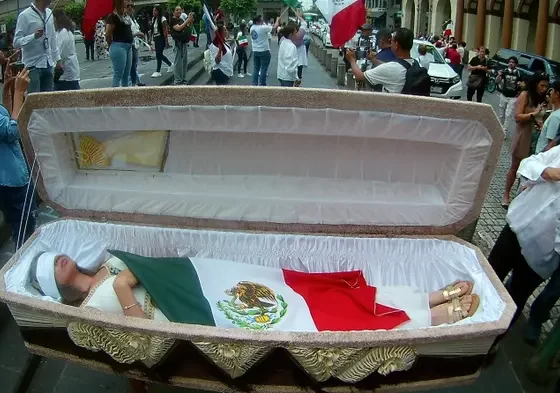 Los manifestantes llevaron un féretro en la protesta alegando que la democracia morirá. Luego de que el fin de semana…