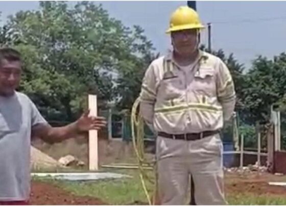 Por fallas en el servicio y supuestos cobros excesivos, amarran a trabajador de CFE en Veracruz