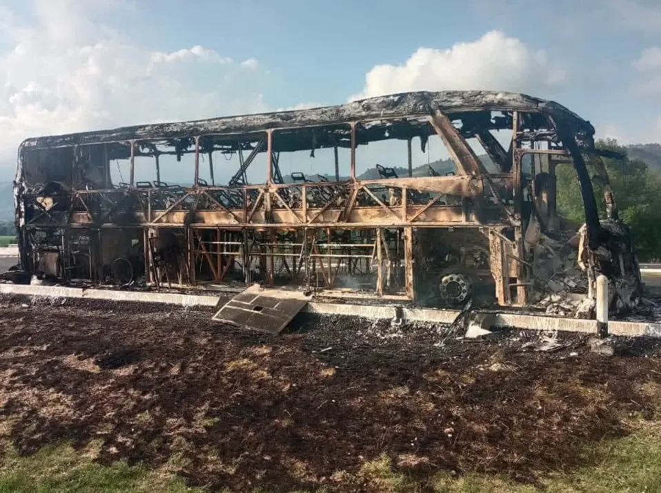La situación fue reportada de inmediato al conductor, quien ignoró las alertas y continuó avanzando. Media hora después, finalmente se detuvo para revisar el vehículo y, para entonces, el autobús ya se encontraba en llamas.