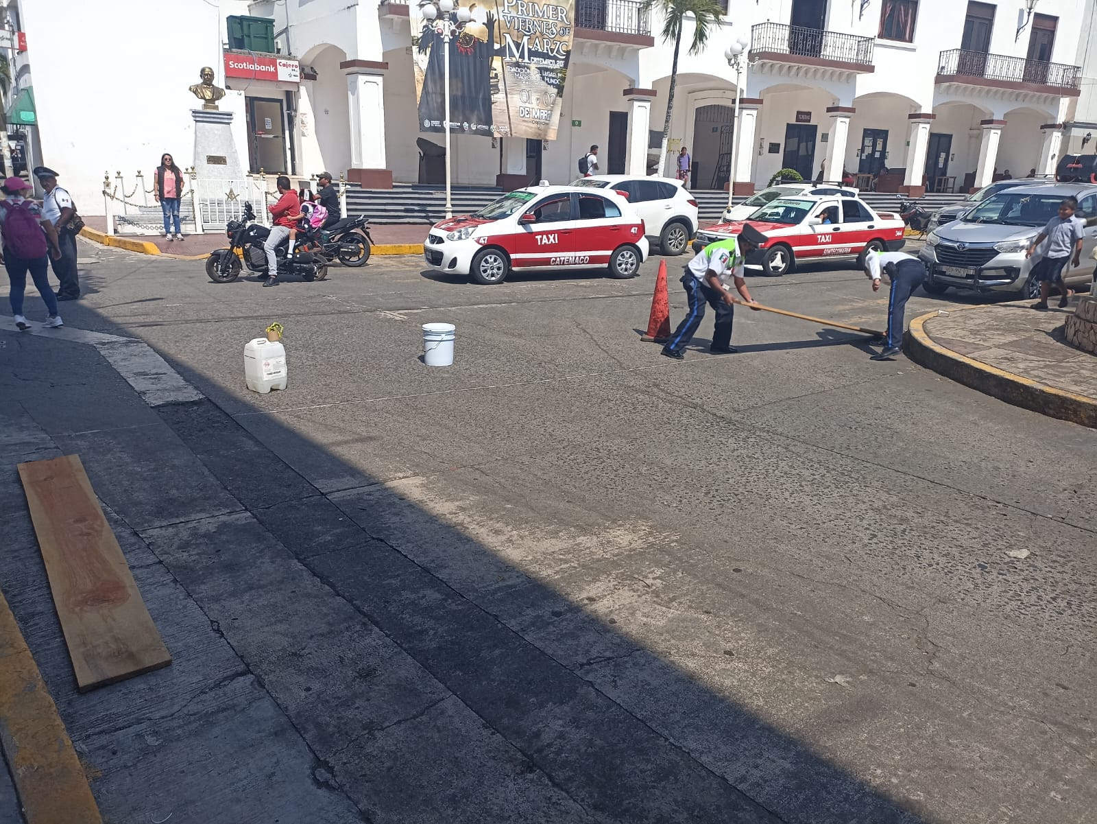 La delegación de tránsito y vialidad en Catemaco desarrolla importantes acciones de balizamiento en el primer cuadro de la ciudad, toda vez que la señalética había registrado deterioro e incluso ya no era visible.