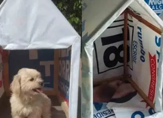 En Hermosillo, un grupo de jóvenes invitó a derribar carteles políticos para construir casitas para perritos callejeros que carecen de…