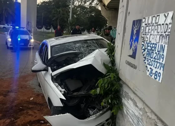 Quedan atrapados en su auto tras chocar en La Boticaria, esta mañana en Veracruz