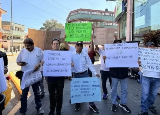 Carteros y empleados operativos de Correos de México se manifestaron en las oficinas de Sepomex en Xalapa para exigir mejores…