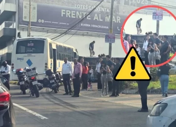 Vuelca camioneta tras chocar con urbano en Boca del Río; hay 5 heridos