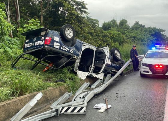 Vuelca patrulla de SSP Veracruz en Las Choapas