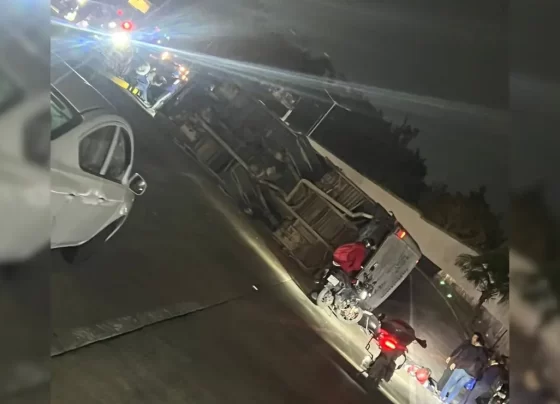 Un camión de pasajeros volcó la noche de este lunes sobre el bulevar Fidel Velázquez del puerto de Veracruz, dejando…