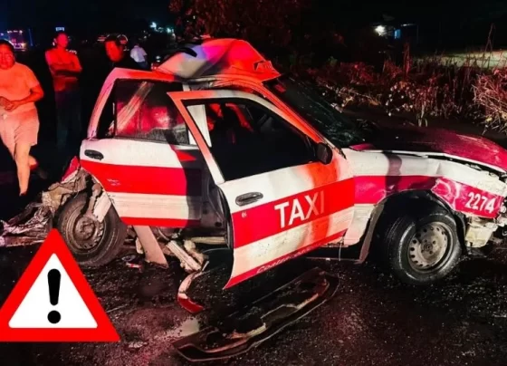 Dos mujeres muertas y dos hombres lesionados, fue el resultado del accidente entre un tráiler y un taxi al sur…