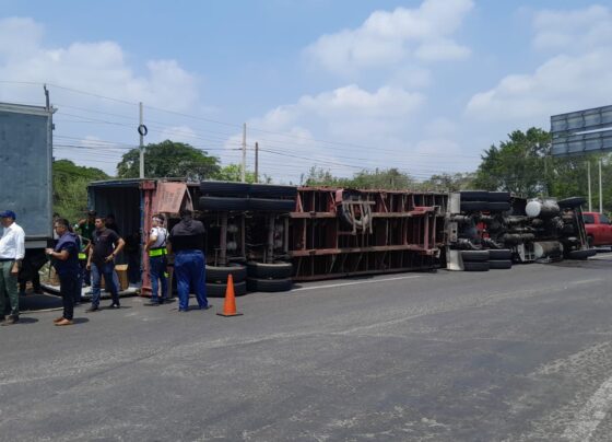 Vuelca tráiler y golpean a conductor en carretera federal Veracruz-Xalapa