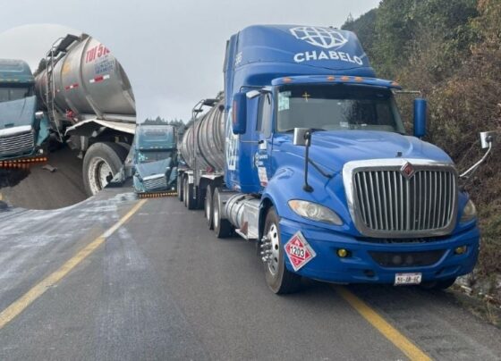 Choque por alcance múltiple entre tres tráileres en la autopista Puebla-Orizaba