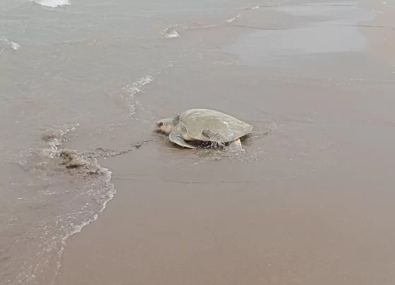 Tortuga desova en playa de Coatza; puso 89 huevos