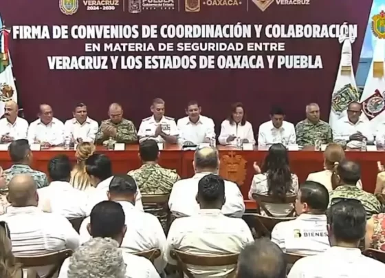 Este viernes la gobernadora de Veracruz, Rocío Nahle, firmó convenios de seguridad con sus homólogo de Oaxaca y Puebla, Salomón…