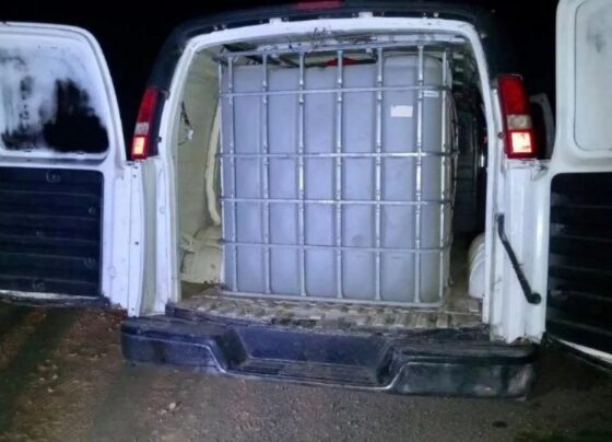 En la camioneta hallaron tres contenedores con capacidad de mil litros para cada uno Elementos de la Secretaría de Seguridad…