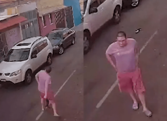 Una cámara de seguridad captó el momento en el que un hombre comete crueldad animal contra un gato en…