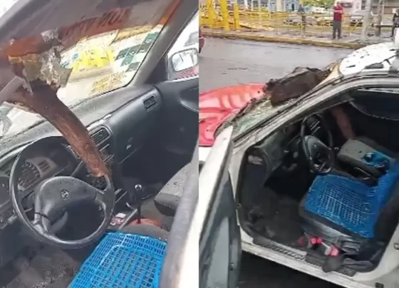 Un taxista se llevó un tremendo susto luego de que una rama atravesara el parabrisas de la unidad que conducía,…