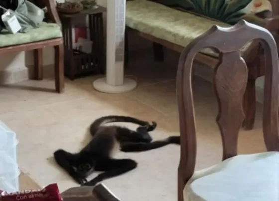 Previo a la llegada del Huracán Beryl, un mono se refugio en un departamento en Cancún y en redes sociales…