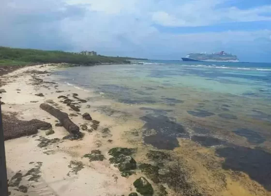 El mar se aleja de la costa en playa de Mahahual previó al impacto del huracán Beryl