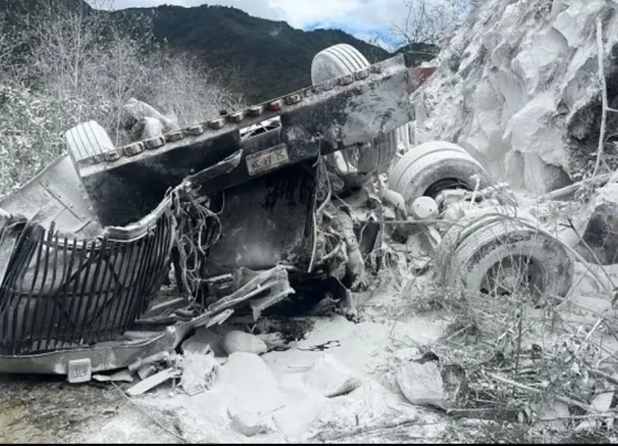 Un tráiler con una plana cargada con bultos de cemento y calidra, se quedó sin frenos cuando descendía las cumbres…