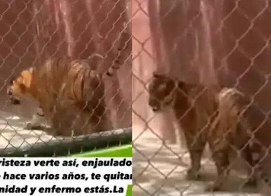 Una visitante se mostró preocupada por la forma en la que el tigre de Bengala se movía al interior de…