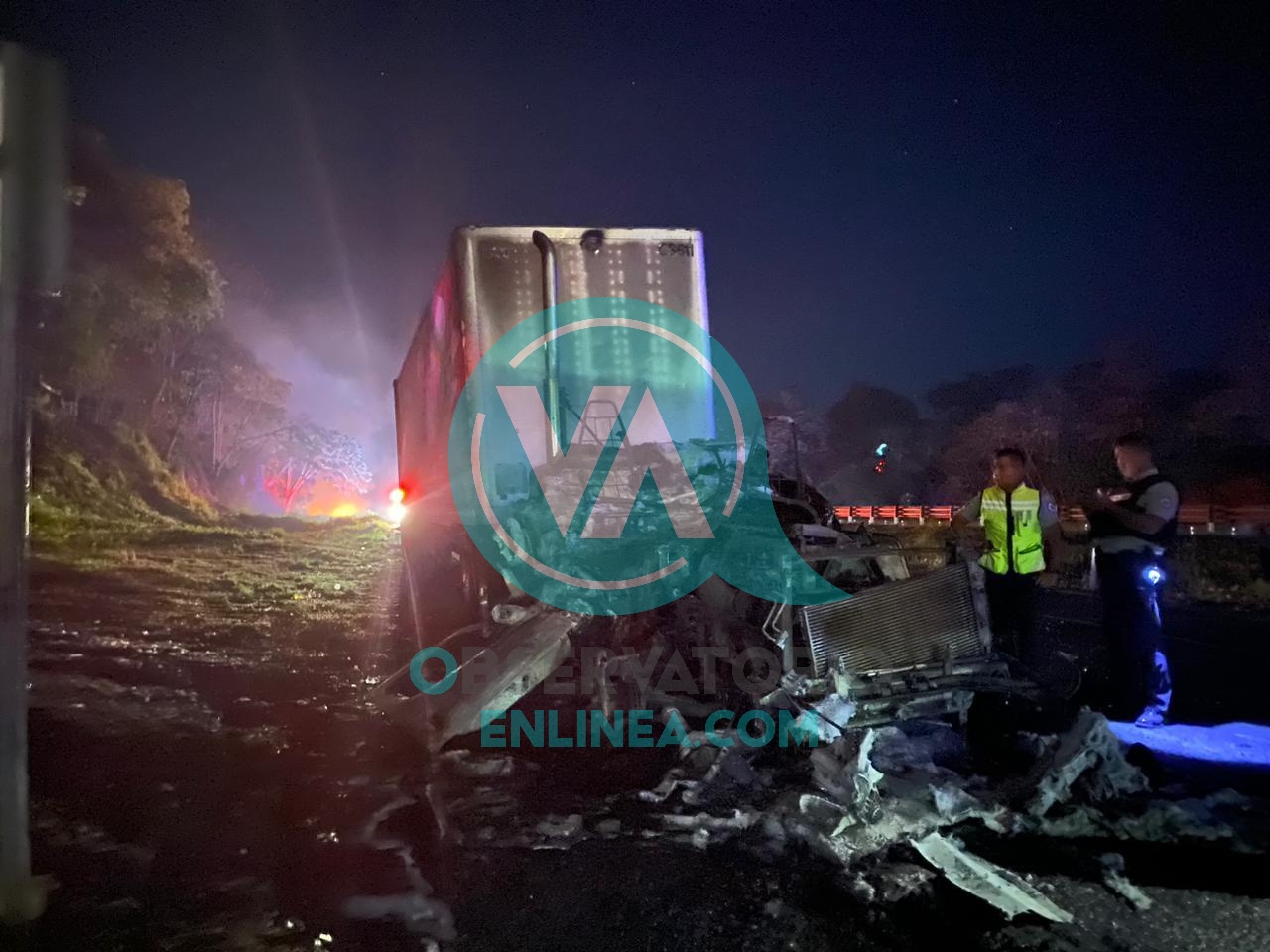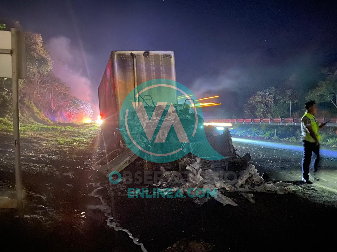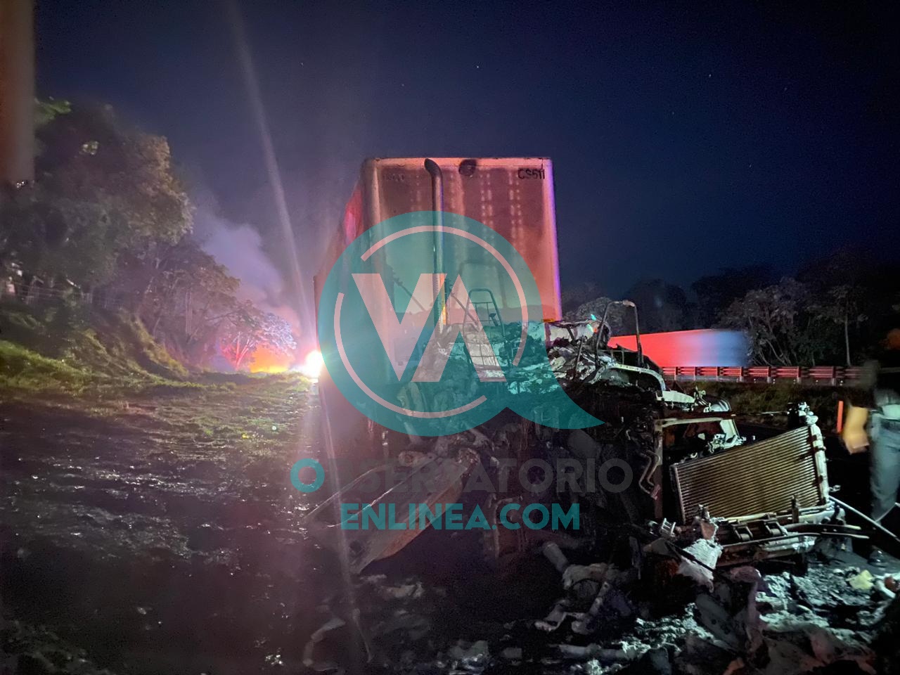 Personal de Protección Civil de los municipios de Oluta y de Acayucan, respectivamente, acudieron al sitio referido, procediendo a tareas de enfriamiento y así controlar las llamas que amenazaban con extenderse a las cajas que remolcaba la unidad pesada.