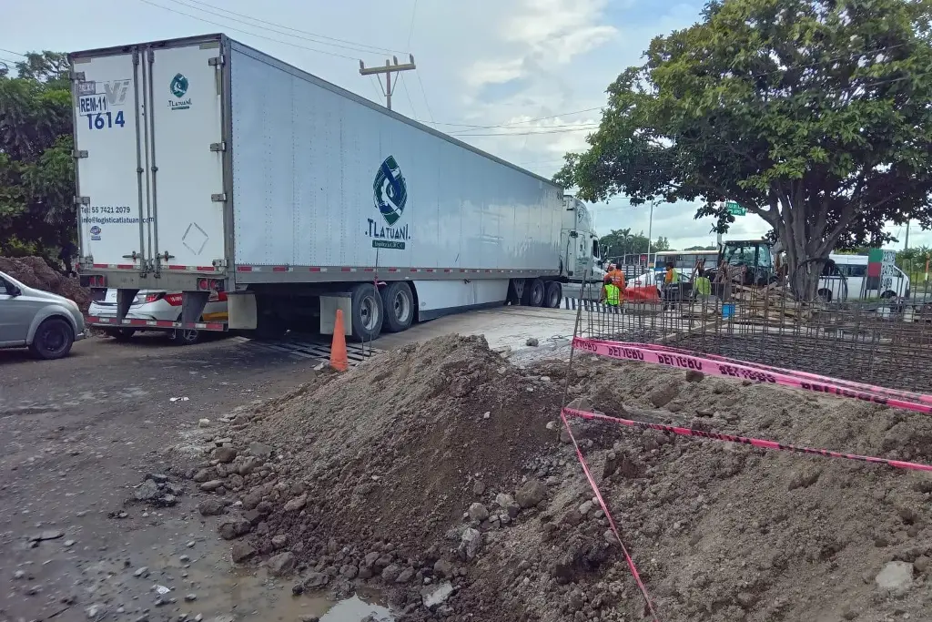 El hecho ocurre justo en la entrada a la central de abastos, en donde el trailer intentó cruzar, sin embargo, quedó atorado.