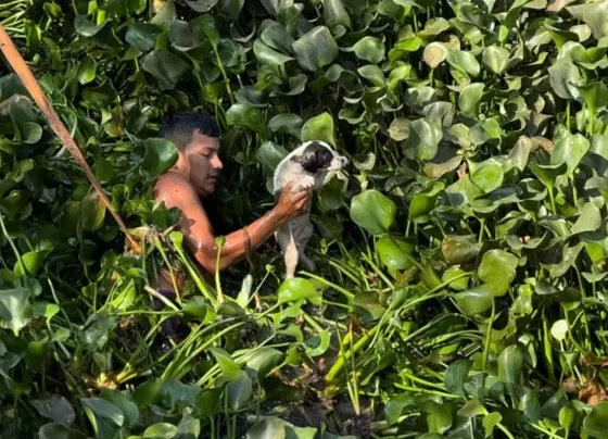 Rescatan perrito de río; hay indicios de que fue lanzado al agua