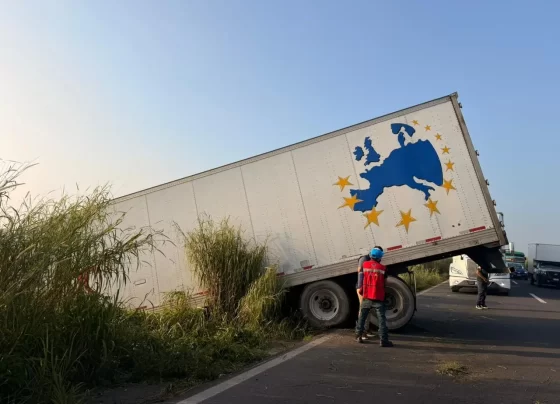 Un tráiler de Mercado Libre se salió de la carretera Coatza-Mina, en el tramo de Las Matas y se fue…