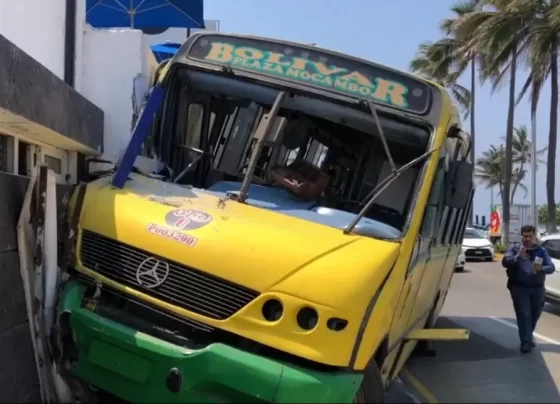 Deja 7 lesionados choque de camión contra barda de universidad en Veracruz