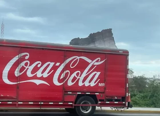 Un camión de una empresa refresquera resultó afectado por la presencia de los vientos con dirección del norte durante este…