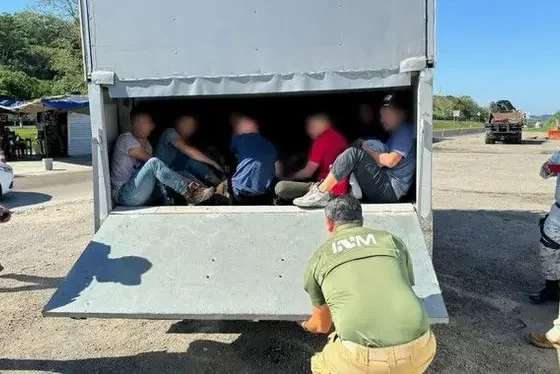 Después de atravesar un retén con rayos X las autoridades de migración descubrieron a 64 migrantes que iban hacinados en…