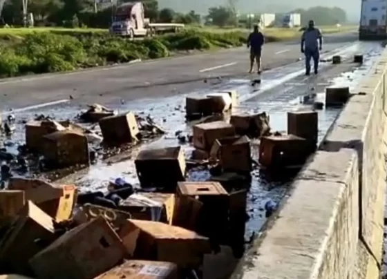 Vuelca camión de cervezas en autopista Córdoba-Veracruz y rapiñeros se llevan mercancía