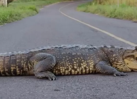 ¡Tremendo susto! Enorme cocodrilo los sorprende en carretera