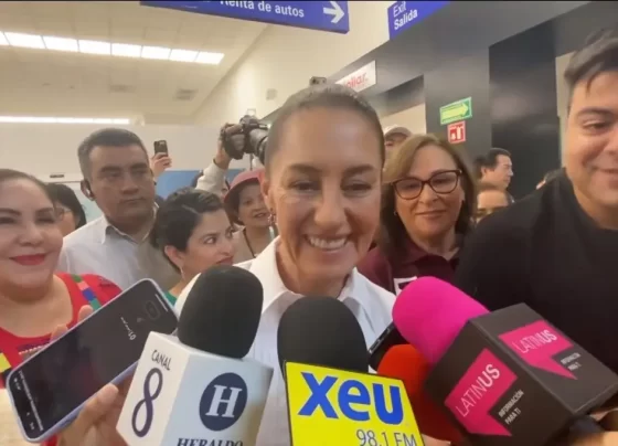 La precandidata de Morena y aliados a la presidencia de la República, Claudia Sheinbaum Pardo llegó al aeropuerto de Veracruz…