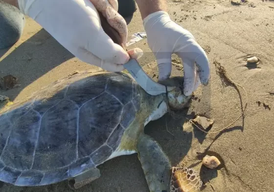 El ejemplar pertenecía a la especie verde, una red se le enredó en el cuello y no pudo sobrevivir: murió…
