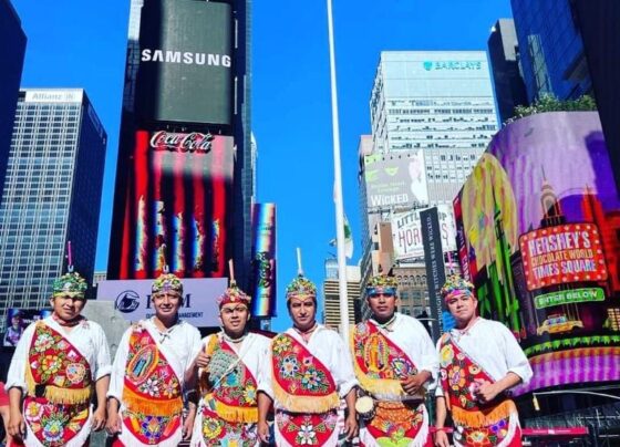 En redes sociales se viralizó la llegada de los Voladores de Papantla al Times Square en Nueva York La imagen…