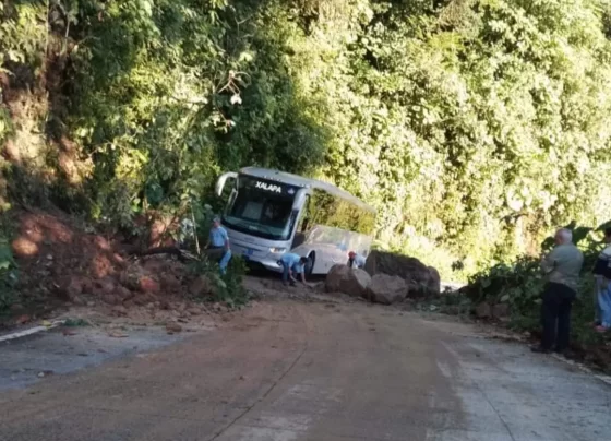 Caída de tierra y rocas causa bloqueo parcial en carretera Misantla-Xalapa