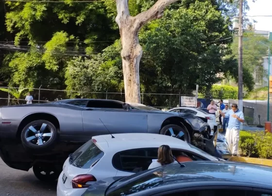 Rápido y furioso: Challenger termina montado sobre otro auto en Xalapa
