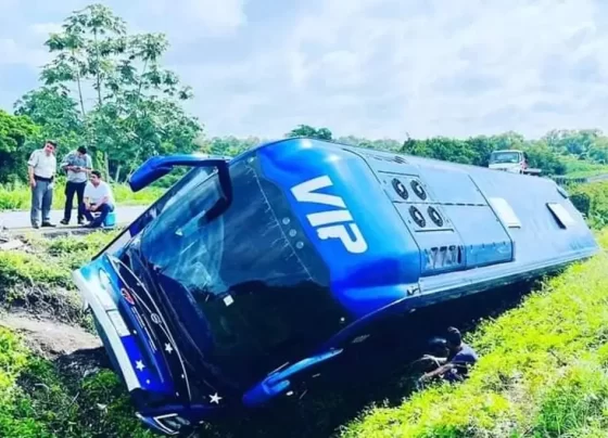 Vuelca autobús tras presunto intento de asalto en carretera de Veracruz