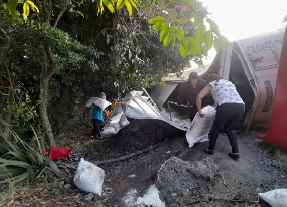 Los bultos de azúcar se los llevaron hasta en motocicleta Una presunta falla mecánica provocó la volcadura de un tráiler…