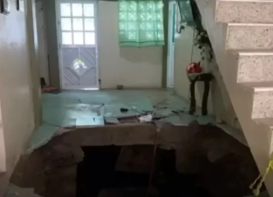 Un enorme socavón se tragó parte de una casa provocando que sus habitantes no puedan habitar la vivienda, en el…