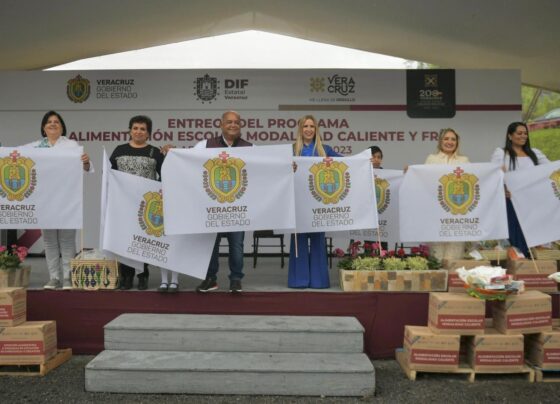 Eric Cisneros y titular del DIF Estatal, Rebeca Quintanar dan banderazo al Programa de Alimentación Escolar